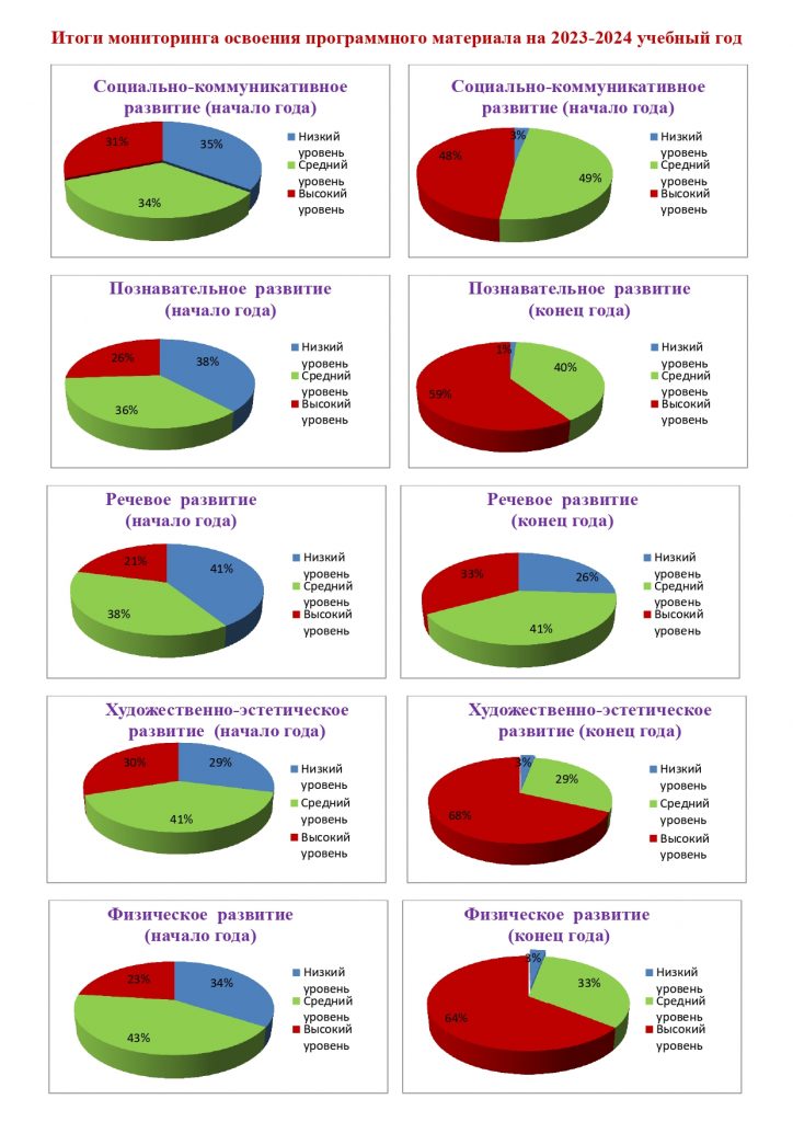 Прослеживается стабильность в динамике уровня усвоения программы, это показатель  того, что весь педагогический процесс приобрёл системность, соответствие всех разделов программы, благодаря чему у детей развивается целостное восприятие картины окружающего мира, что дети успешно осваивают программный материал в течение учебного года, их знания, умения и навыки соответствуют возрастным требованиям.  Этому свидетельствуют результаты педагогического мониторинга за 2020-2021, 2021-2022, 2022-2023, 2023-2024 учебных годов.