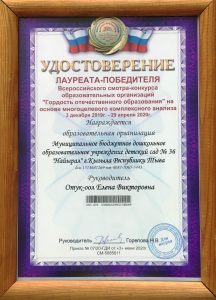 Результат участия нашего детского сада в смотре — конкурсе «Гордость отечественного образования»